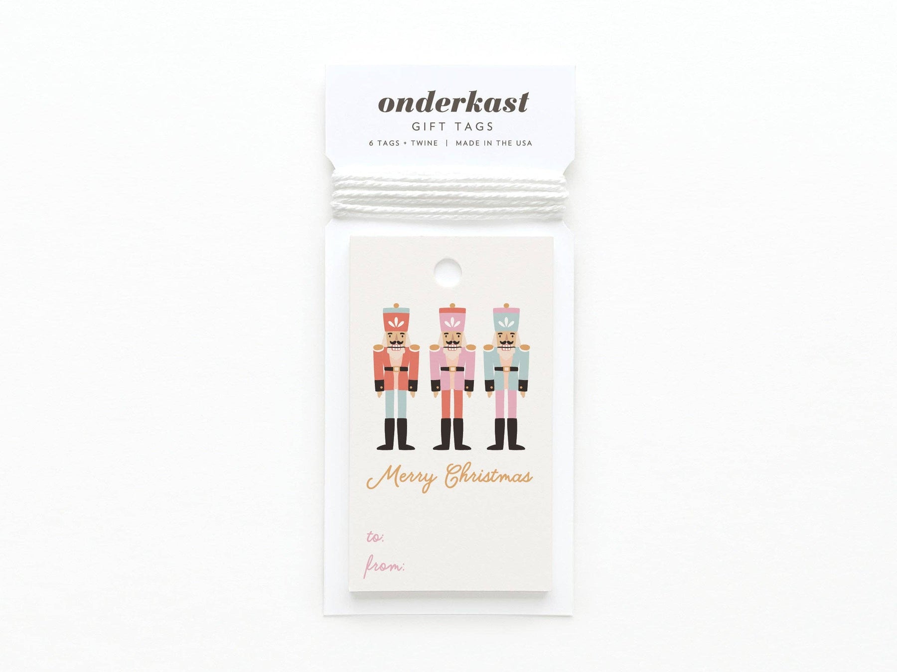 Details: Each set includes 6 gift tags and approximately 5 feet of twine (10" per tag). Every tag features the same design on the front and is blank on the back.