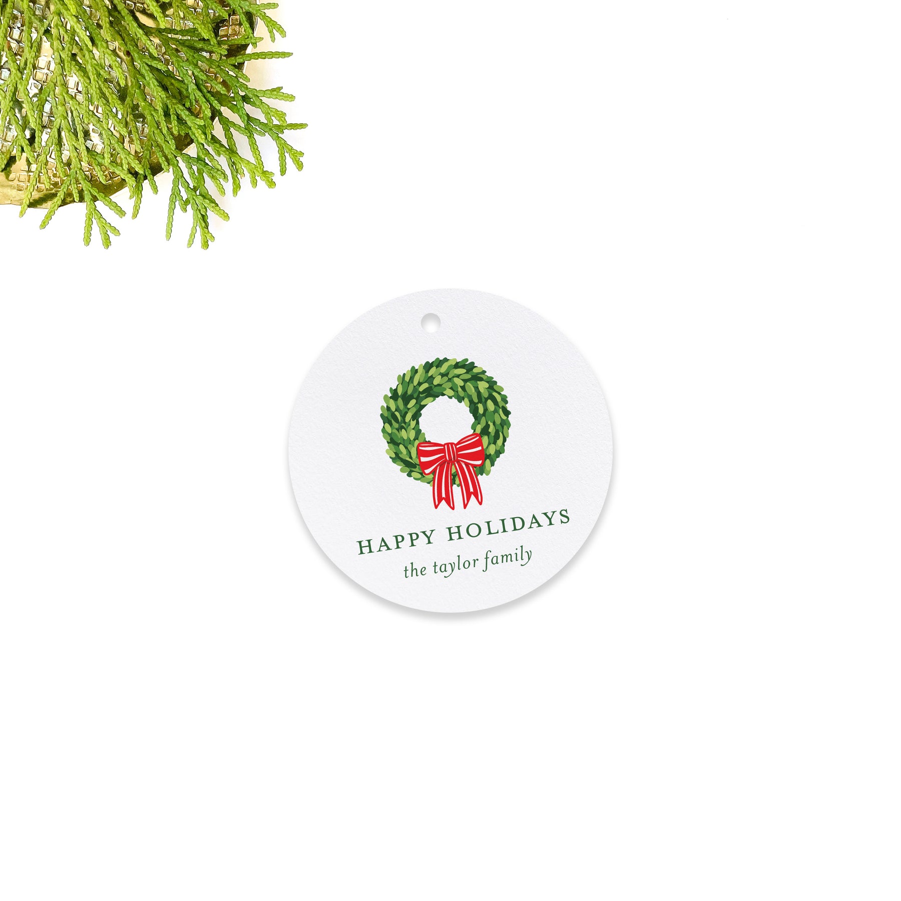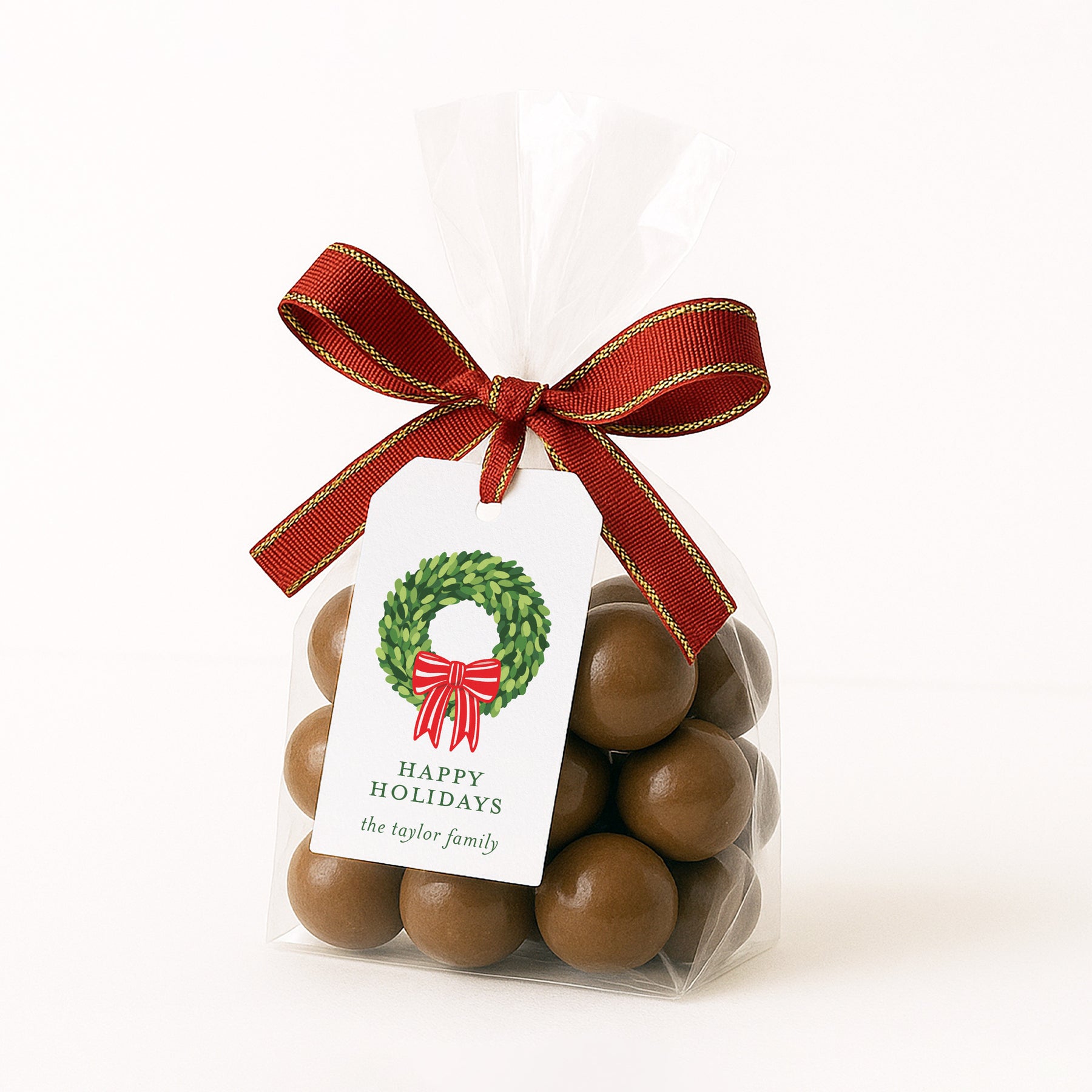 Red Bow Wreath Holiday Gift Tag