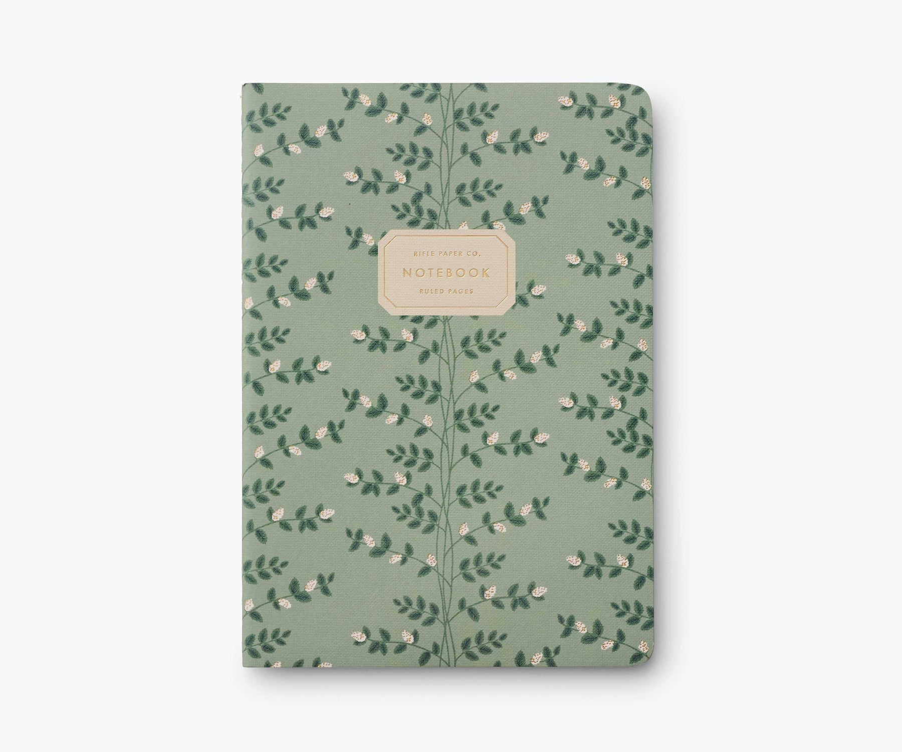 Good things come in threes. This set of three lay-flat notebooks features stitched binding, gold foil accents, and 64 ruled pages each. A delightful trio, the notebooks feature three complementary patterns: Dahlia, Delphine, and Climbing Vines.