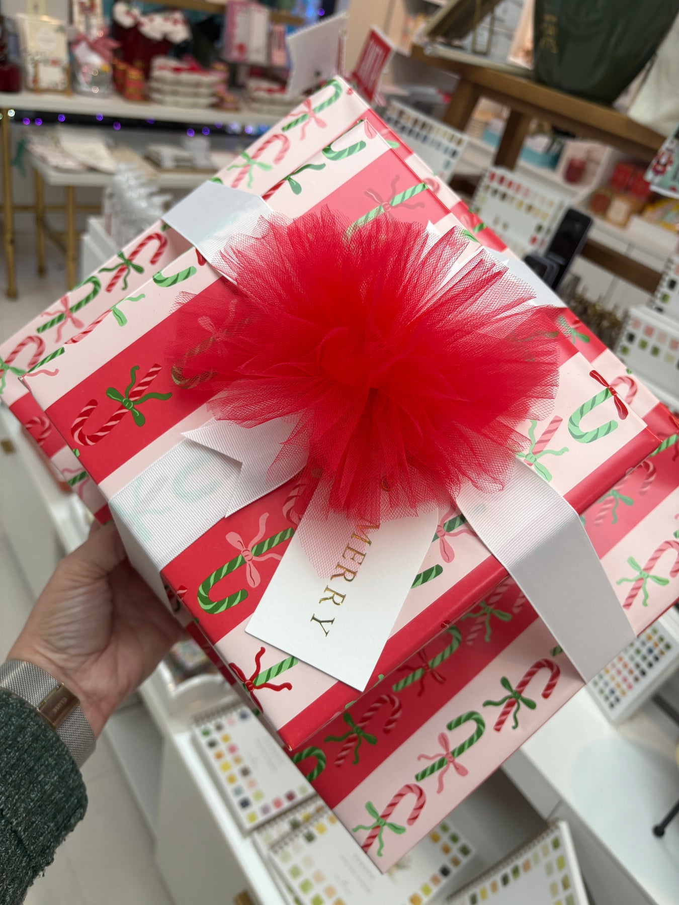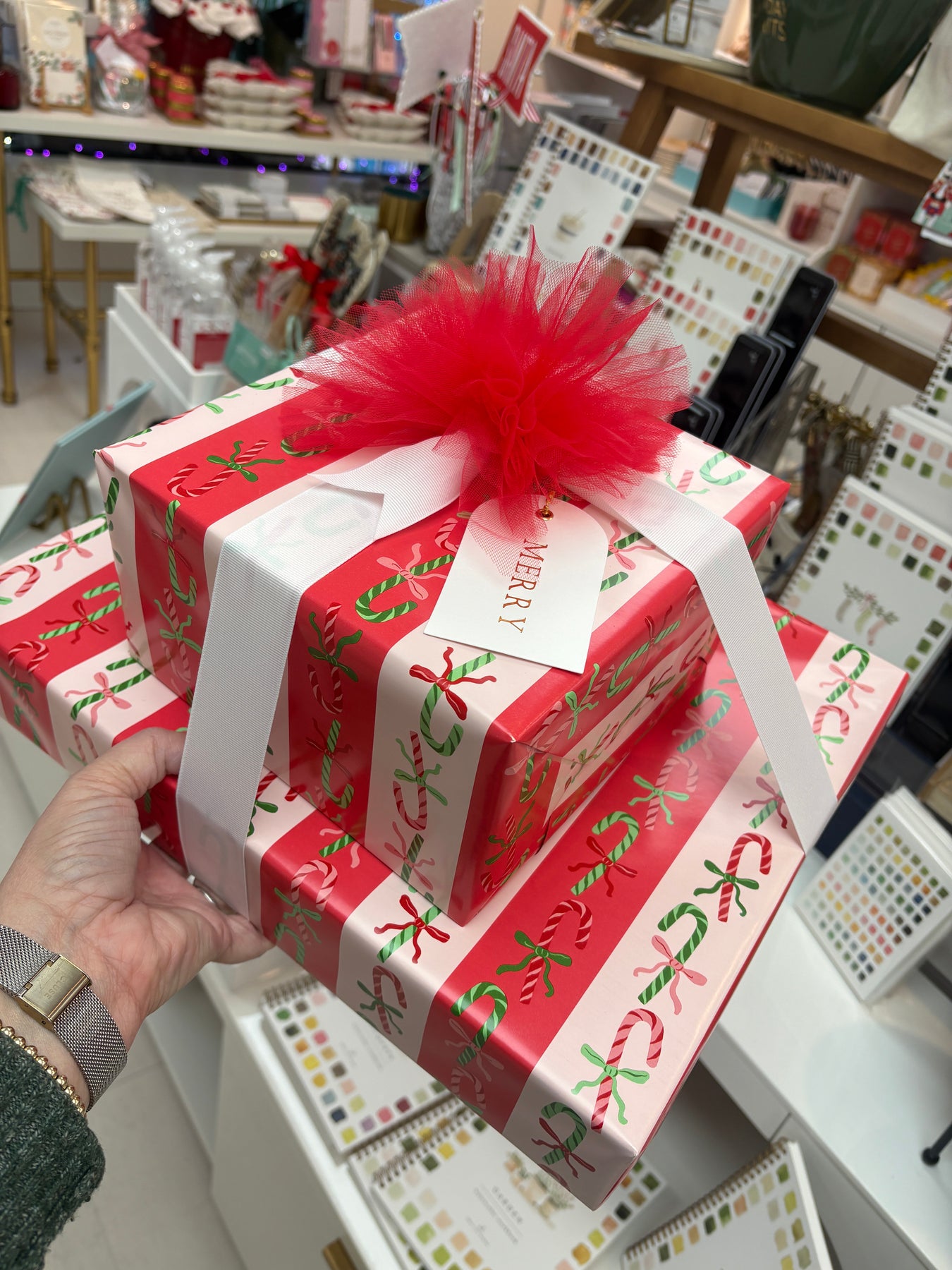 Because nothing says “holiday spirit” like handing off your wrapping duties and walking out with a bow-tied masterpiece.